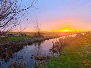 Een zonsopgang in de polder