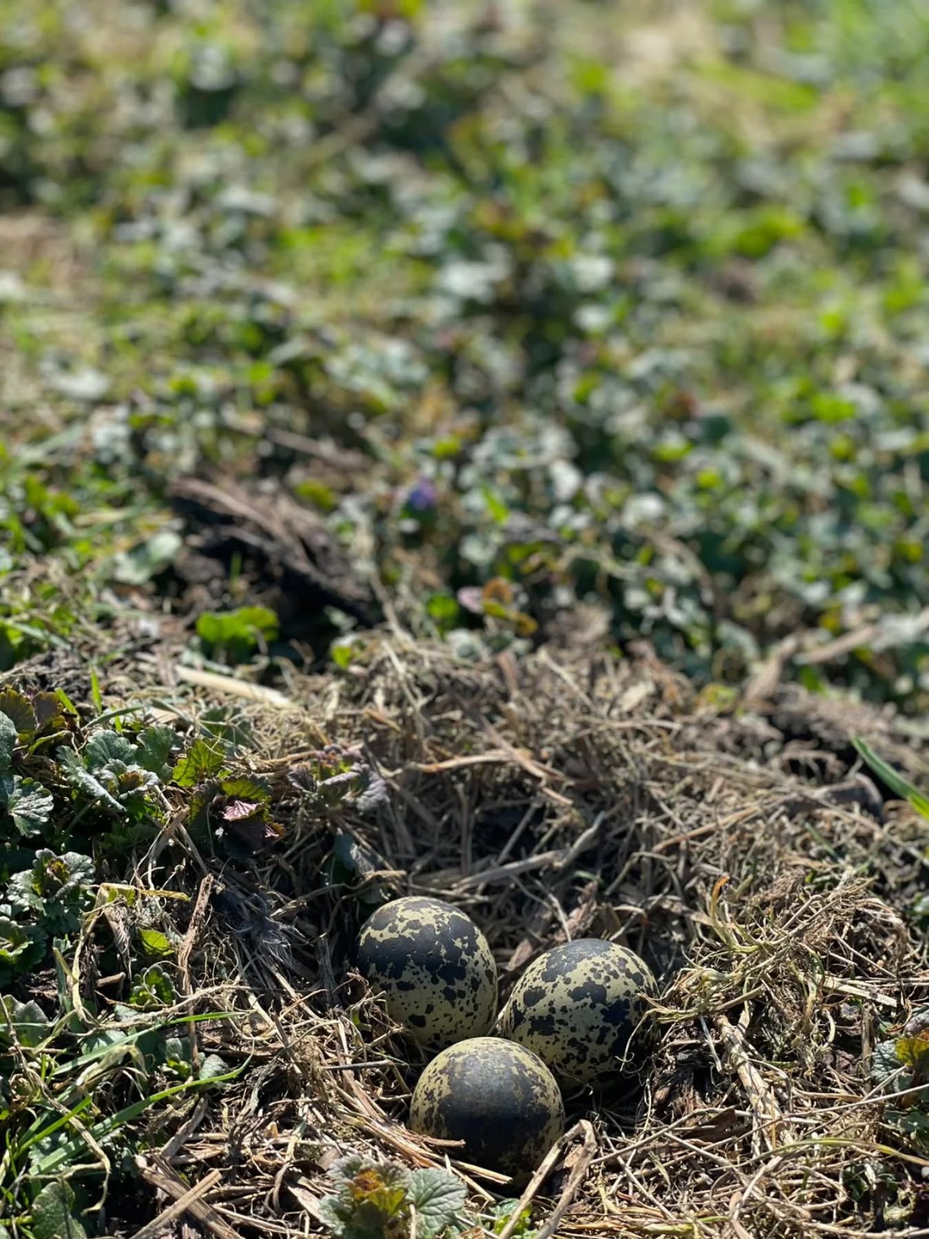 Afgelopen week is het eerste nestje in ons land gevonden. Dit stuk land is op fietsafstand van onze boerderij en camperplaats. Trouwe vrijwilligers van de natuurvereniging ‘Weidehof Krimpenerwaard’ zoeken regelmatig of er nestjes in het land zitten. Zo ook Bastiaan, die iedere week trouw op pad gaat in ons land. Het resultaat: Een nestjes met kievitseieren.