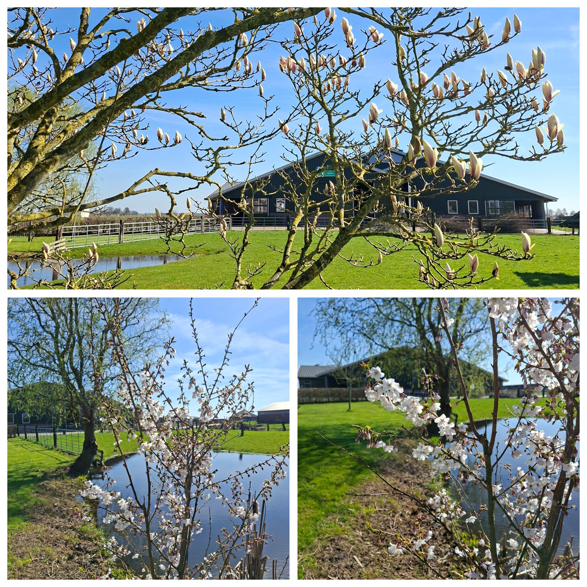 De bloemen komen op en het gras gaat weer groeien. Onze mini Japanse sierkers boom wordt ieder jaar steeds meer ‘boom’.